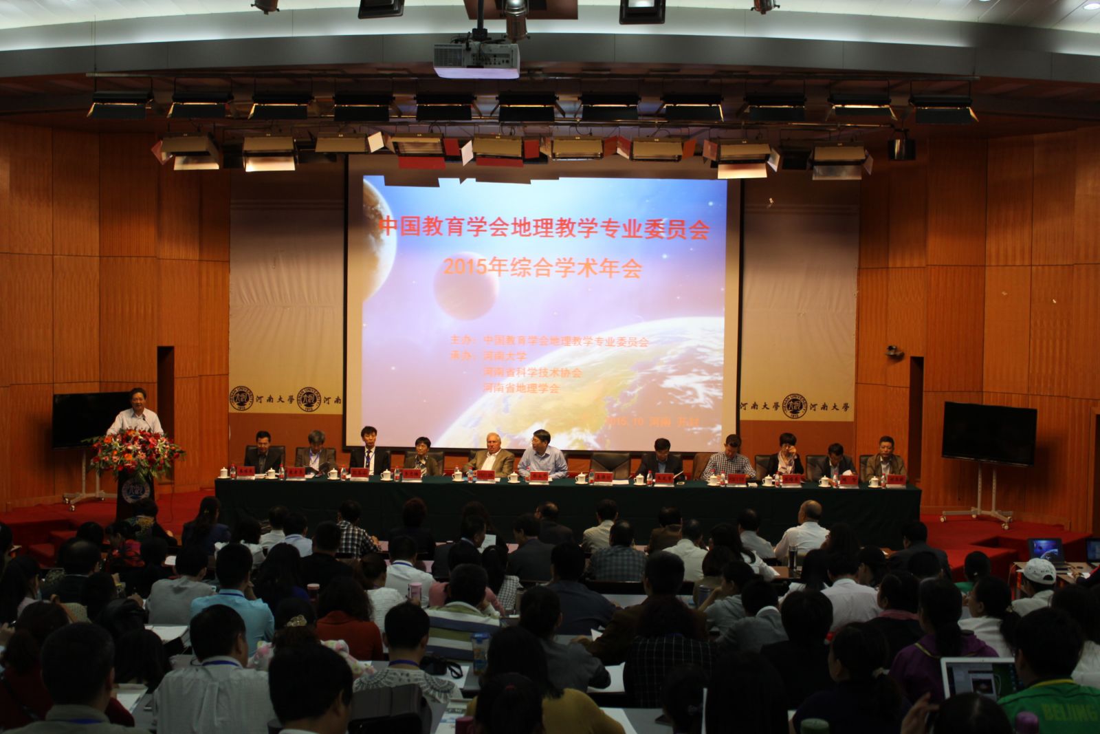 10月15日至16日,中国教育学会地理教学专业委员会2015年综合学术年会在我校隆重举办。本次年会由中国教育学会地理教学专业委员会主办,我校与河南省科学技术协会、河南省地理学会协办。本次会议的主题是地理学科核心素养与育人价值,来自全国各高校的地理教育工作者、学生、有关出版社、杂志社代表共六百多人参加会议。