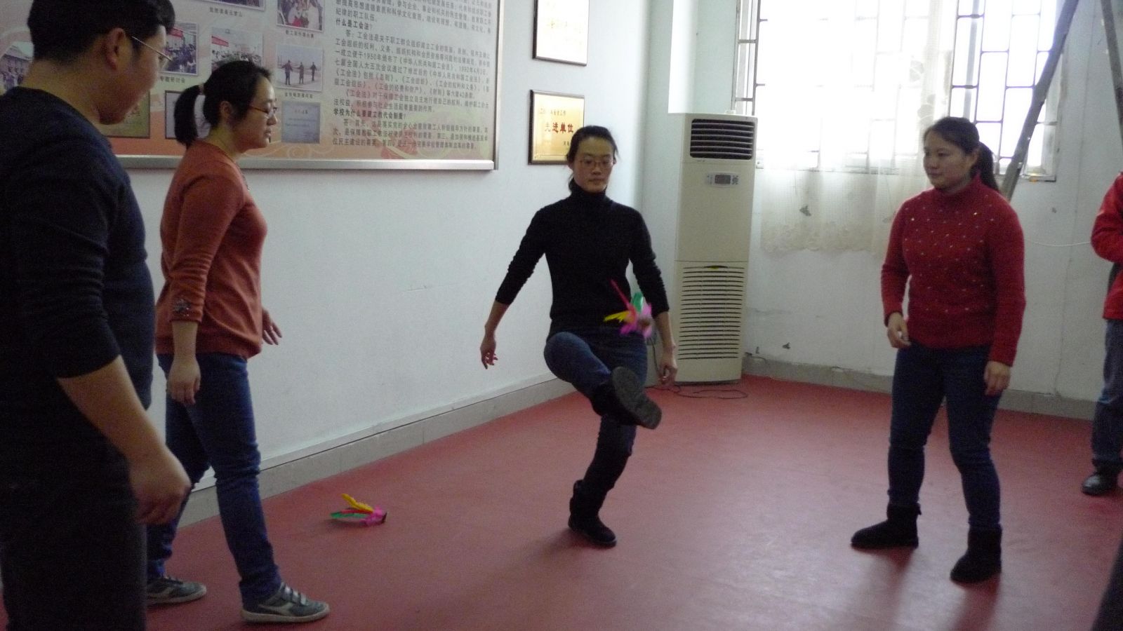 比赛分小组进行,每组比赛限时3分钟,踢球次数多的队伍获胜。比赛时,老师们身姿矫健,精神饱满,周围观赛人员及助赛嘉宾喝彩声、欢笑声不断。经过25分钟里两轮紧张激烈的比赛,选拔出8名女教职工参加3月6日于明伦校区体育学院篮球馆举行的拥抱春天毽身无限女教职工毽球比赛。