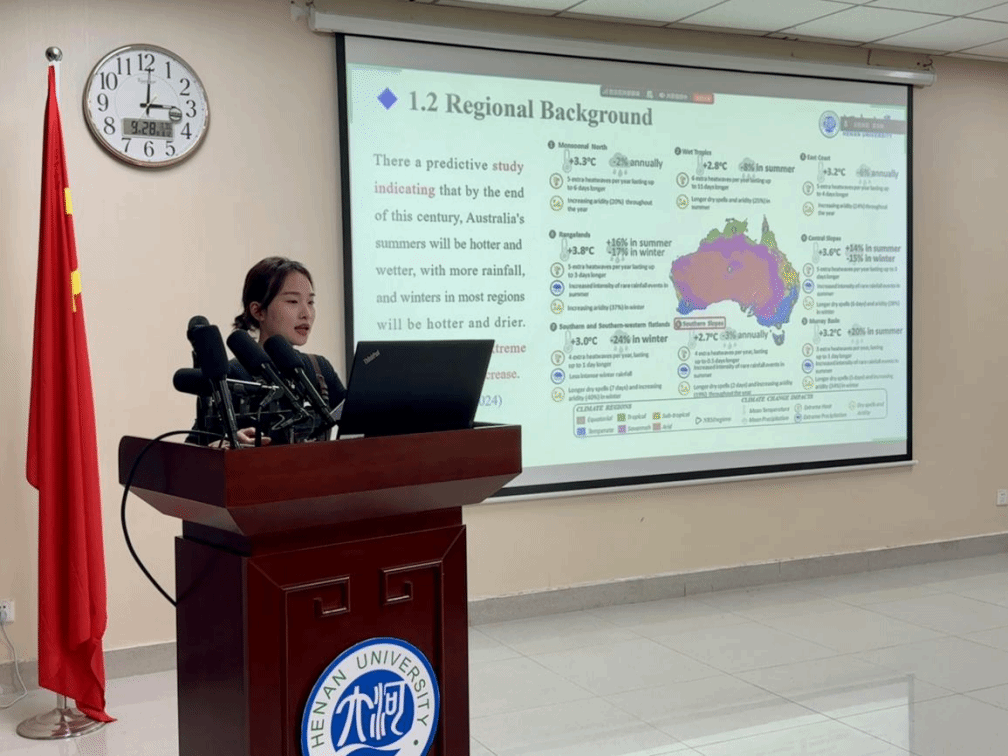 汇报会上,6个实习小组依次用ppt英文汇报。各实习队通过精心制作的实习报告,从自然地理、人文地理、生态地理、地理信息技术四大主题维度,全方位展示在澳大利亚实习期间的探索与收获。通过全员参与汇报的方式,实习队将澳大利亚实地见闻与专业知识深度结合,用科学且富有感染力的表达,呈现了澳大利亚独特地貌形成机制、多元人文景观的地理溯源、生态系统的保护与发展、地理信息技术在城市与自然空间的创新应用等丰富内容。