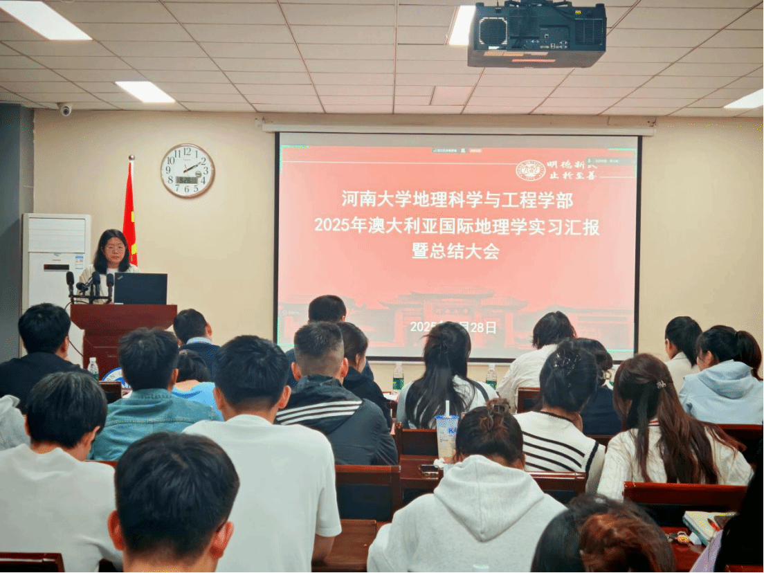 为展示国际地理实习队的实践成果,促进“STEP”教学理念的国际化践行,2025年9月28日,M88 APP下载于地学楼二楼报告厅举行2025年澳大利亚国际地理实习汇报暨总结大会。本次会议特邀地理科学学院党委副书记徐小军、副院长丁志伟、党委书记助理冯文璐、地理科学系副主任朱文博、区域与城市科学系党支部委员张丽君参会,荣邀请澳大利亚墨尔本皇家理工大学刘钢军教授线上参会。会议由2022级辅导员马利群主持。