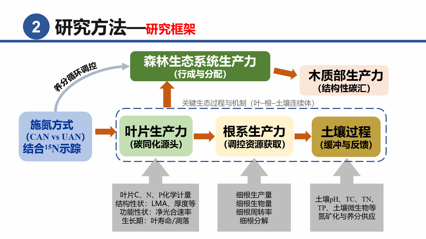 张晨露首先围绕“Underappreciated role of canopy nitrogen deposition for forest productivity”最新研究成果展开报告。她指出,该研究依托河南大别山森林生态系统国家野外科学观测研究站,通过一项长达十年的大规模野外控制实验,首次系统量化了“冠层氮沉降”在提升森林生产力和碳固存中的关键作用,解决了该领域长达数十年的科学争议。该研究成果表明,传统UAN实验方法因忽略了冠层过程,极大地低估了大气氮沉降对全球森林碳汇的实际贡献。这一发现对于修正政府间气候变化专门委员会(IPCC)等机构使用的全球碳循环模型具有重要意义,将显著提升未来气候变化预测的准确性,并为我国乃至全球制定科学的“碳中和”路径及自然解决方案(Nature-based Solutions)提供坚实的理论支撑。