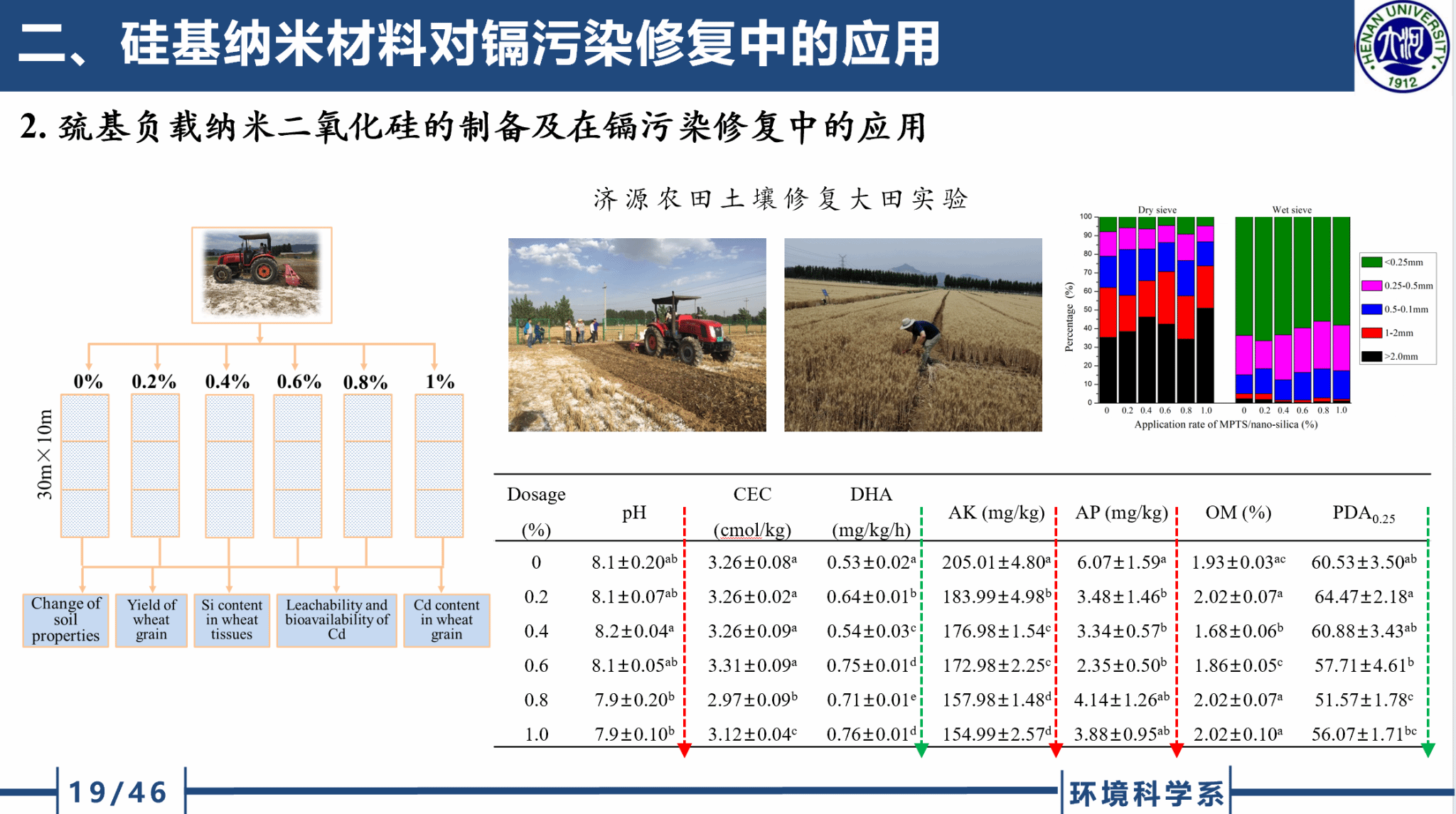 王洋洋长期深耕重金属污染修复领域,以“技术创新-机理揭示-工程应用”为核心脉络,在多维度取得突破性成果。他聚焦农田与底泥重金属污染治理,研发巯基改性生物炭、磷酸盐复合硫掺杂生物炭、表面蚀刻功能化纳米材料等系列高效修复剂,实现Cd、Cu、Pb等多金属协同稳定,其中Cd最高钝化效率达 98.2%,改性纳米二氧化硅对土壤 Cd 钝化率超 91%,有效抑制重金属在农作物中的富集并改善土壤理化性质。通过人才培养与平台建设,一系列研究既解决了重金属修复中的效率与风险问题,又为精准修复提供技术与方法支撑,推动农田/场地重金属污染治理的理论进步与实践落地。