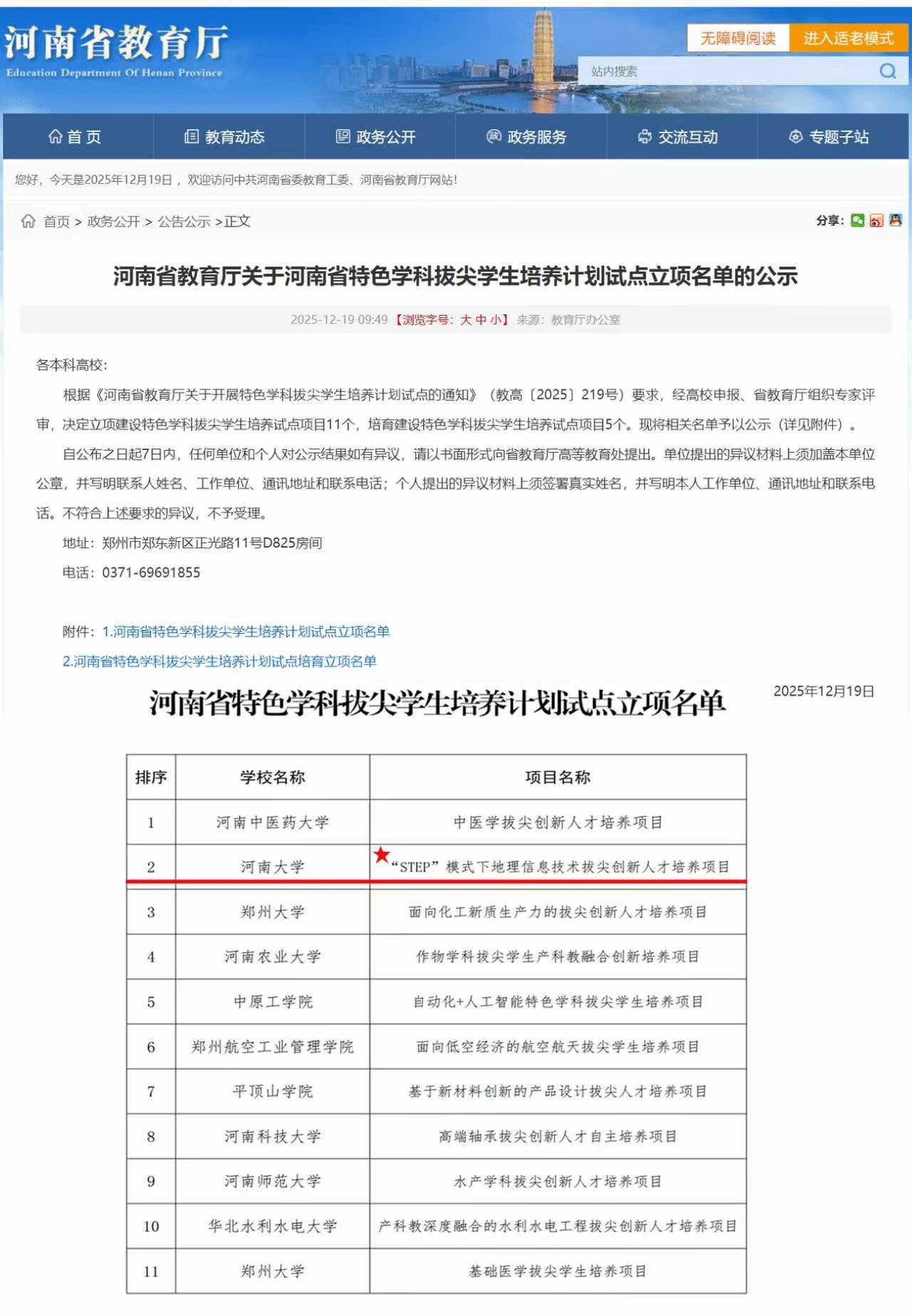 近日,河南省教育厅公示了河南省特色学科拔尖学生培养计划试点立项名单,由发展中国家科学院院士、河南大学学术副校长、地理科学与工程学部主任刘彦随教授作为负责人申报的“STEP模式下地理信息技术拔尖创新人才培养项目”获批立项,成为全省11个立项建设的“特色学科拔尖学生培养试点项目”之一。