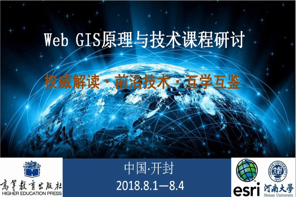 Web GIS理论与技术应用是国家教育部本科专业教学质量标准当中规定的专业基础知识,很多高校都开设了相应课程。随着云计算、物联网、大数据和人工智能等信息技术的发展,Web GIS技术也突飞猛进,现有很多教材急需更新和完善。为此,高等教育出版社于2018年6月出版了《Web GIS原理与技术》一书。为了促进各兄弟高校之间互学互鉴,推动新兴技术的掌握和传播,高等教育出版社、Esri中国、河南大学联合举办《Web GIS原理与技术》课程研讨会议。